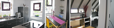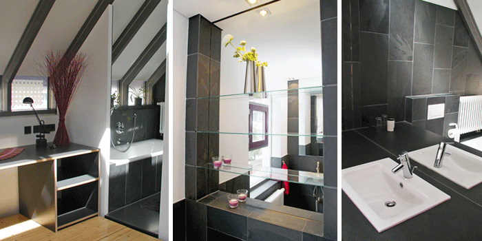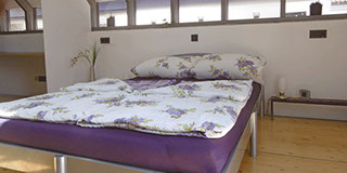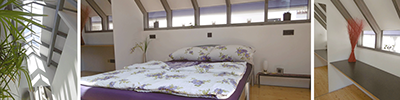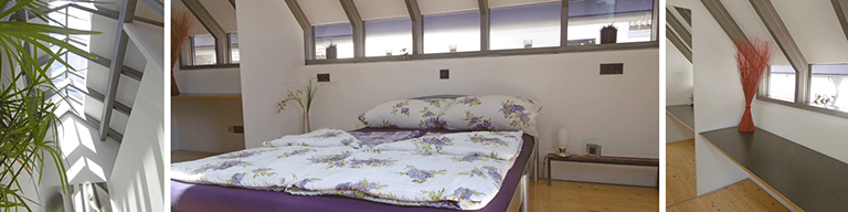 Im DG finden Sie ein großzügiges Schlafatelier (französisches Bett mit 140 cm Breite),  einen begehbaren Kleiderschrank und ein schönes Badewannenbad mit WC.