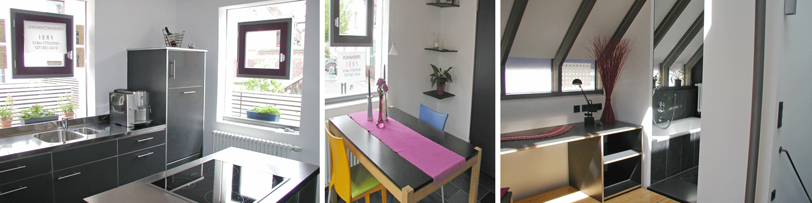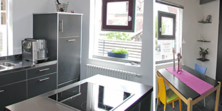 Im EG befindet sich eine komplett eingerichtete Wohnküche (Geschirrspüler, Backofen und Kaffeeautomat), ein Abstellraum und ein separates WC. Sämtliche Gebrauchsgegenstände einer gut sortierten Küche sind ausreichend und in guter Qualität vorhanden, ebenso Küchenhandtücher.